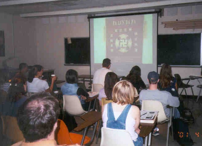 In 1999 we had an unexpected opportunity to connect with a professor from the University of Wisconsin at Stevens Point. During the past one and a half years, he and his colleagues invited us 5 times to 7 of their classes to introduce Falun Dafa. There were about 300 American students who got to know about Falun Dafa because of this. We were becoming more and more experienced and we used our wisdom to open up their minds as well as ours.