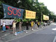 Practitioners from all over Germany gathered today and called on the German Government to take immediate action to condemn the Jiang Zemin regime's persecution of Falun Gong, to urge Jiang's government to free all practitioners, and to help rescue the 130 practitioners who have been on hunger strike for more than 3 weeks.