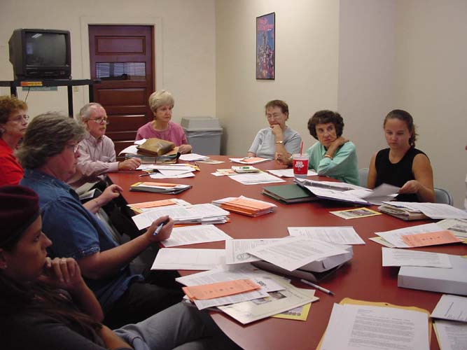 | Amnesty International members watch the human rights video | Amnesty International members discuss the Falun Gong issue with practitioners |