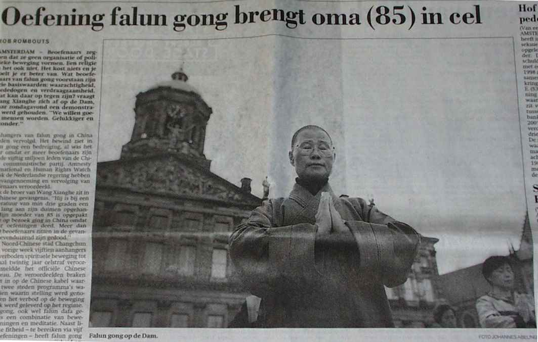 (Clearwisdom.net) Amsterdam -- Practitioners say it is not an organisation or political movement. Neither is it a religion. It's free and it makes you feel better. What practitioners of Falun Gong stand for are three fundamental values: truthfulness, compassion and forbearance. What can be wrong about that? asks Wang Xianghe to herself at the Dam, where a demonstration was being held last Sunday. "We want to become good people. Happier and more healthy."