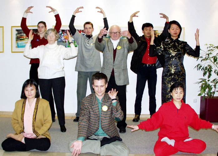Falun Gong practitioners demonstrate the five sets of exercises at the opening