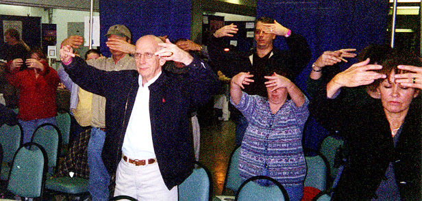 Many people came to our booth and asked, "Where can I learn the exercises?" Some people felt very good after learning the movements at the free seminar on the first day, and wanted to learn to practice the five sets of exercises with us. When they learned that we do and teach the exercises outdoors, even in the winter, they expressed that they would try to help find an indoor site so as to provide more convenience for us. After the expo, though it was very cold, several Westerners who had learned the exercises at the expo or had learned about Falun Gong joined us in an outdoor group practice on the weekend. Some of them bought a copy of the book Zhuan Falun and began to practice cultivation.
