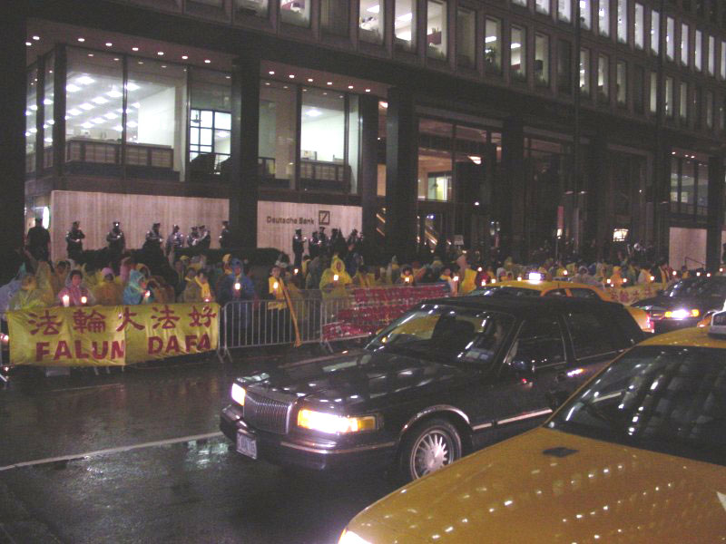 The World Economic Forum is being held in New York from January 31 to February 4, 2002. Business leaders of many countries, influential people in world economic circles, famous entrepreneurs and experts in economic theory are attending the forum. To further clarify the truth of Falun Gong, Dafa practitioners from the US and other countries gathered in New York to introduce Falun Dafa to this important group and expose the Jiang regime's persecution of Falun Gong. The Hongfa activities started today.