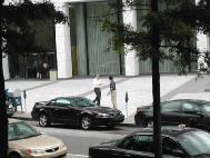 At the beginning of the ceremony, layer upon layer of dark clouds blew in on strong winds. But practitioners were not affected at all. They sent forth righteous thoughts to completely eliminate the evil trying to damage Dafa in other dimensions. Shortly after, the dark clouds disappeared. People with predestined relationships continuously came here to ask for Dafa flyers or to follow practitioners on the small stage to do the elegant exercises. A practitioner performed a flute solo entitled, "Nine Pairs of Shoes" [a piece commemorating a practitioner who used 9 pairs of shoes to walk to Beijing to appeal for the restoration of Falun Dafa.] Passersby stopped to listen. Attendees there all truly felt the vast righteousness. Nine female practitioners in white dresses sang the songs "On One's Way Home", "Be Saved" and "Falun Dafa Is Good". Two female practitioners performed a beautiful dance with colorful fans and silk scarves, as if the heavenly girls had come to the human world. The songs and dances showed people the wonderfulness and sacredness of Dafa. Using the small stage, disciples also expressed their heartfelt appreciation and gratitude to our honorable and compassionate Teacher who has been suffering all kinds of hardship to save us and other sentient beings.