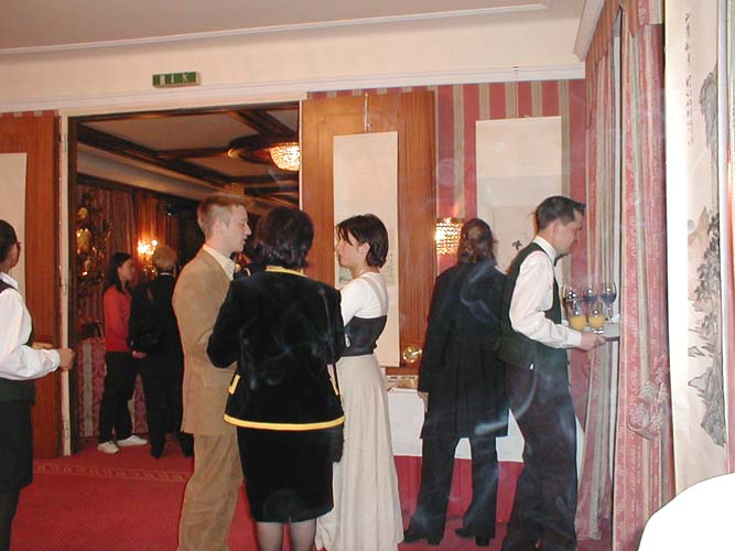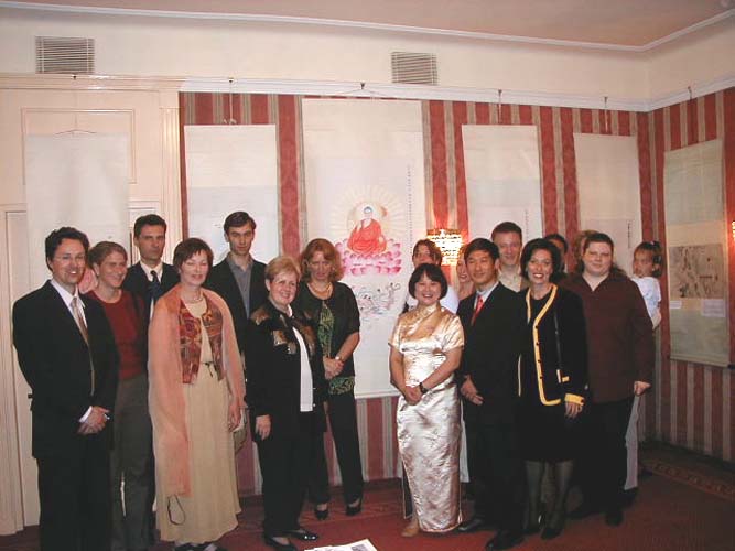 (Clearwisdom.net) On May 10, as the 10th anniversary of the public introduction of Falun Dafa was coming up, Zhang Cuiying held her second painting exhibition in Austria in the renowned art city of Salzburg. The painting exhibition was held in grand fashion at a famous luxury hotel located in downtown Salzburg. At the opening ceremony, Ms. Zhang brought forth to nearly a hundred visitors the profound meaning of Chinese traditional arts rooted in the principles of Truth, Compassion, Forbearance. She also used her own experiences in China to expose the Jiang regime's brutal persecution of Falun Gong practitioners. Local newspapers published advertisements of the exhibition and sent reporters to attend the opening ceremony.