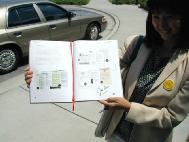 Before the officials left, another practitioner had a chance to talk to Governor Jeb Bush. She asked the Governor to sign on the page about Falun Dafa proclamations from Florida State in a truth-clarifying brochure. The media at the site immediately took photos. The university newspaper reporter held a follow-up interview with the practitioners.