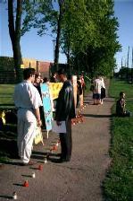(Clearwisdom.net) On May 10, 2002, from 10 a.m. to 10 p.m., Latvian practitioners held a candlelight vigil to commemorate the Falun Dafa practitioners who were persecuted to death by the Jiang regime for practicing "Truthfulness-Compassion-Forbearance."