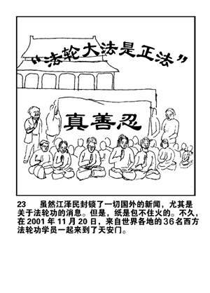 24. In China, the people gradually started to realize that they'd been fooled and Falun Dafa truly is good. They saw clearly Jiang's paranoid, frenzied state, and when contrasted with the practitioners' compassionate, peaceful behavior, the people began to understand.While Jiang's regime tried to cover up everything, Falun Gong practitioners freely and openly answered any questions that the people wanted to ask, using every opportunity to clarify the truth.