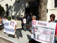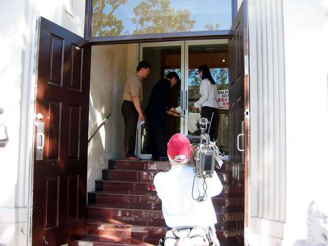 Bay Area Falun Gong practitioners from Taiwan pointed out that this was not an isolated case. Starting from July 1999 when China's former dictator Jiang began the persecution of Falun Gong, many brutal persecution cases have taken place, including some that involved Taiwanese Falun Gong practitioners. The practitioners requested the Chinese government to release Lin Xiaokai, Charles Li and other illegally detained Falun Gong practitioners immediately. The practitioners tried to deliver a letter to the Chinese Consulate, but the officials inside the consulate refused to open the door.