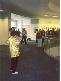 During the afternoon session, we had enough time to perform all five exercises in full. Especially during the hour-long meditation, we seemed to generate an oasis of peace amidst the hubbub and buzz of the various exhibits. Visitors to our display table took almost one hundred CDs about Falun Dafa. Many visitors also stopped to snap pictures of us performing the exercises. At the end, one of the organizers complimented us on the gracefulness of the exercise movements. It was altogether a warm and positive experience.