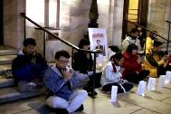 In the evening, practitioners returned to the park in front of the city hall. They lit candles and sent forth righteous thoughts with practitioners around the world. Around 9pm, Mayor Edward Gaza showed up at the event. Mr. Gaza said, "I know about this case. We will try our best to help."