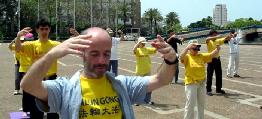 During the parade, practitioners demonstrated the Falun Gong exercises, distributed Dafa truth-clarifying materials and sent forth righteous thoughts. Many residents warmly welcomed practitioners and the banners they were holding, which were imprinted with the words, "Falun Dafa is good" and "The World Needs Truthfulness-Compassion-Forbearance". The parade concluded at the Chinese Embassy.
