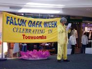 (Clearwisdom.net) June 14-20, 2003 is the 2nd Annual Falun Dafa Week in Toowoomba, Queensland, Australia. The opening ceremony was held on June 14 in the largest shopping mall in Toowoomba. Practitioners from Brisbane, Gold Coast and Sunshine Coast also came to attend the ceremony. A western practitioner made an opening speech. She briefly introduced the audience to Falun Dafa and how it has flourished around the world. Two other practitioners used their personal experience to explain the tremendous benefits Falun Dafa has brought to their health, both physically and mentally.