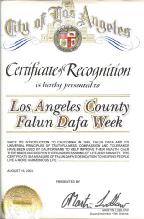 “Certificate of Special Congressional Recognition to Los Angeles County Falun Dafa Week from US Congressman Hilda Solis [August 16, 2003]”