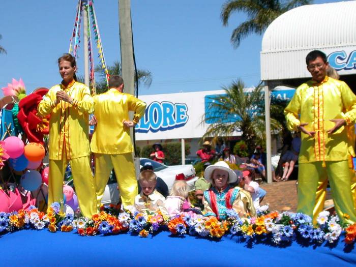 (Clearwisdom.net September 26, 2003) Filled with blossoming flowers, September in Toowoomba is abundant with the sights and sounds of spring. On September 20, this garden city held its 54th grand Flower Festival parade and thereby started the weeklong Flower Festival. This is the fourth time that Queensland practitioners participated in this grand celebration activity and presented again the greatness and serenity of Falun Dafa to the tens of thousands of local residents and tourists from different areas, including many from mainland China.