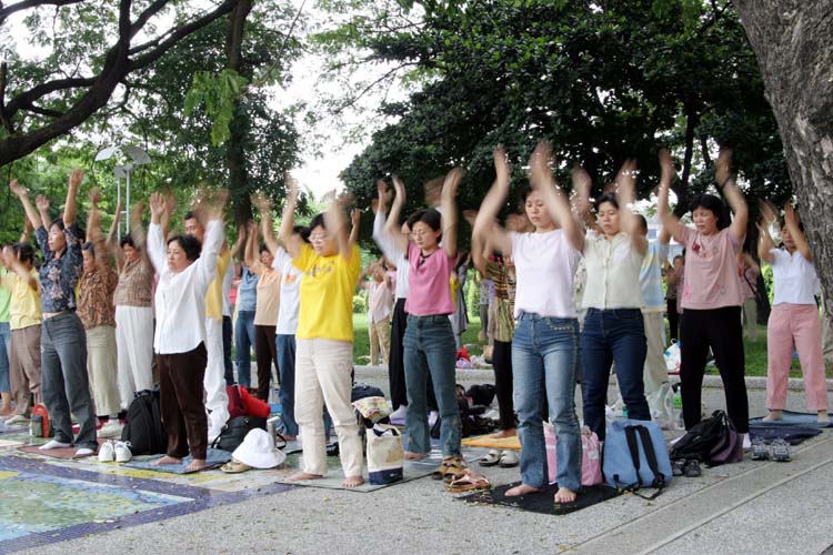 Some people couldn't believe that such cruel torture can happen in 21st China, and asked "Is this real?" But the fact is, the Falun Gong practitioners only want to be good persons according to the principles of "Truthfulness Compassion Tolerance" and practice the exercises to improve health but they have suffered over 100 different kinds of torture, and over 1000 practitioners have died from torture. Among those killed, many are women and elderly people. What the practitioners can demonstrate is only a small portion of the various tortures Chinese police are using. A young lady cried at seeing the scenes; more people were angry and condemned Jiang's atrocities.