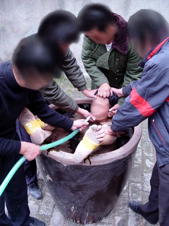 ![]() How wire cutters are used to scratch the soles practitioners' feet in Changle Labor Camp |