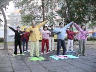 Mr. Zhuang started coming to our group exercise practice in May. He is sixty-eight and loves mountain hiking. It was when he was climbing Chaishan Mountain two or three years ago when he saw a man meditating. Next to him was a banner saying "Falun Gong." He thought the meditation looked very good, so he copied the man's movements every time he passed him. Mr. Zhuang mentioned it to a friend. But his friend didn't seem to be interested. The meditating man stopped going to Chaishang Mountain after some time. Mr. Zhuang didn't know where to go to learn Falun Gong. One day, this friend called him to say he had benefited a lot from a Falun Gong Nine-Day Lecture Series, and asked Mr. Zhuang if he would like to go. It was exactly what Mr. Zhuang had been looking for. He enrolled in the class right away.