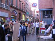 (Clearwisdom.net) During the third weekend of October, the weather was particularly sunny in France. We left Paris and traveled several hundred miles to the city of Toulouse to tell local people about Falun Gong. Our activities, including exercise demonstrations and an anti-torture exhibition, were held in the city center.