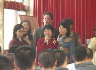The program included the video Long Yuan showing how Zenon and other Western practitioners unfurled banners and declared, "Falun Dafa is great!" on the Great Wall and Tiananmen Square, Beijing, China. After the speech, Zenon and Taiwan Falun Gong practitioners sang in Chinese the songs Coming for You and Be Saved. Some inmates were moved to tears and many applauded following the songs. Before saying good-bye, some inmates asked where they could learn Falun Gong after they are released.