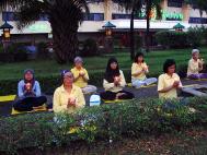 On the afternoon of the first day of the conference, practitioners did the exercises on the sidewalk in front of the hotel where they stayed. There were numerous vehicles passing by, and many stopped to take Falun Gong information when they passed the practitioners. At night, practitioners held a large group sharing. They exchanged experience in spreading Fa and clarifying the truth to government, legal circles and citizens of their respective countries.