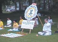 (Clearwisdom.net) On July 20, 2004, from 7:00p.m. to 10:00p.m., Falun Gong practitioners in Waterloo area in Ontario, gathered at Victoria Park in Kitchener and held a photo exhibit and a candlelight vigil to commemorate Dafa practitioners who have given their precious lives during Jiang's political group's five-year persecution.