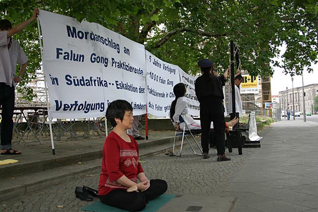 (Clearwisdom.net) Prior to the German Foreign Minister's visit to China, practitioners from Berlin and nearby cities held an anti-torture exhibition in front of the Ministry of Foreign Affairs on July 8, calling for the German Minister's attention to the persecution against Falun Gong conducted by the Jiang group and to expose its attempt to intensify the persecution overseas.