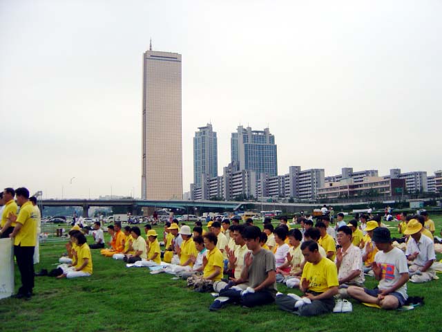 (Clearwisdom.net) On July 24, 2004, Falun Gong practitioners held a candlelight vigil by the Han River side to commemorate fellow practitioners who have died from the persecution in China and to call upon kind people to come together to stop the persecution.