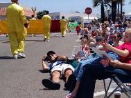 (Clearwisdom.net) On July 4, the U.S. Independence Day, the 100th annual Fourth of July Parade was held in Huntington Beach, a beautiful seashore city in Southern California. Falun Gong practitioners from Los Angeles, San Diego and Las Vegas participated for the first time in this largest Independence Day parade west of the Mississippi River, which featured more than 300 entries including bands, floats, film and television celebrities, local dignitaries, equestrians and community groups. Falun Gong practitioners' waist drum performance, fairy dance, float decorated with a huge lotus flower as well as the exercise demonstration on the float were warmly received by the spectators and also brought the wonderful blessing of Truthfulness-Compassion-Tolerance to the 300,000 jubilant people along the route.