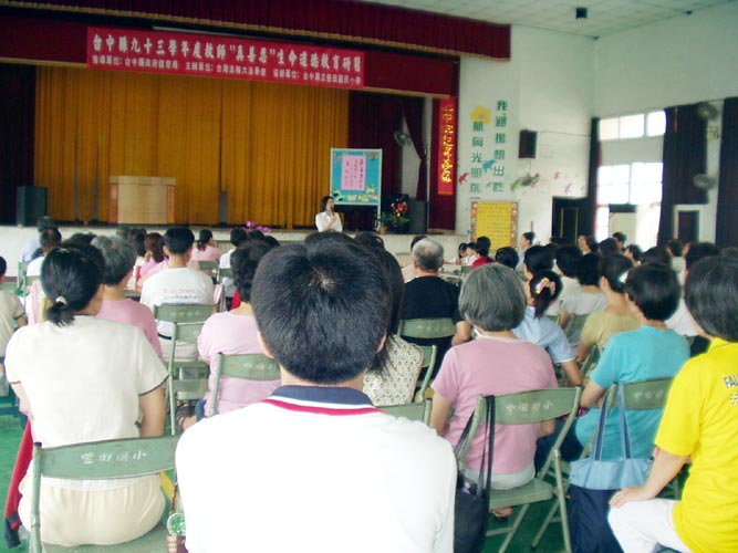 (Clearwisdom.net) On August 2-10, 2004, a nine-day "Falun Dafa Study Camp for Teachers" was held in Fengtian Primary School in Taichung County. Director of the Education Bureau of Taichung County, Wang Mingyu, and Legislator Guo Junming came in person to make speeches. Between 70 and 100 teachers, students, and people from different walks of life including lawyers, bank clerks, personnel from police departments, company managers and civil servants, attended the study session.