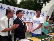 | ![]() Falun Gong practitioners give Tainan Mayor a banner from "Friends of Falun Gong" |