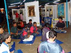 (Clearwisdom.net) From December 24, 2004 to January 8, 2005, Falun Gong practitioners in Jakarta, Surabaya and Bali held a touring art exhibition, "Uncompromising Courage," in the four provincial capitals of Indonesia -- Kota Jambi, Pekanbaru, Palembang and Lampung. They took the opportunity of the exhibition event to clarify the truth about Falun Gong to the public, especially to the Chinese-Indonesian population. The local media gave positive reports on their activities.