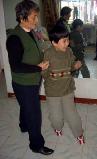 ![]() Zheng Yanxu walks with the support of her grandma |