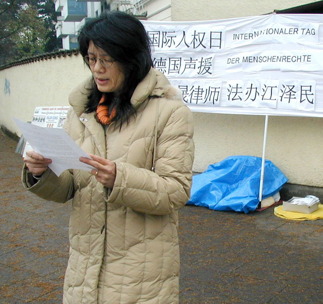 On December 9, 2005, one day before International Human Rights Day, practitioners from Munich, Germany held a protest in front of the Chinese consulate to condemn the over 6-year long persecution of Falun Gong practitioners.