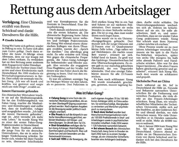 On January 4th 2004, Xiong Wei gained her freedom. She is now in Germany. Last night she told her story at the Ökumenischen centre and thanked the many Dresden locals for helping her and being there when she most needed it.