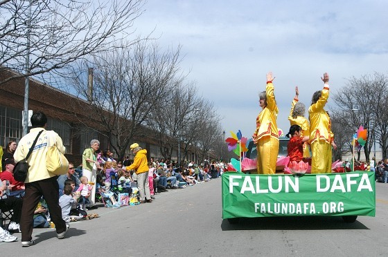 (Clearwisdom.net) On March 12 2005, practitioners in Kansas participated in the 21st San Patrick's Day Grand Parade in North Kansas City. Tens of thousands of people came out to watch the parade. As the practitioners' procession was accompanied with applause and exclamations, practitioners who were distributing fliers along the parade route found it hard to keep up with the demand.