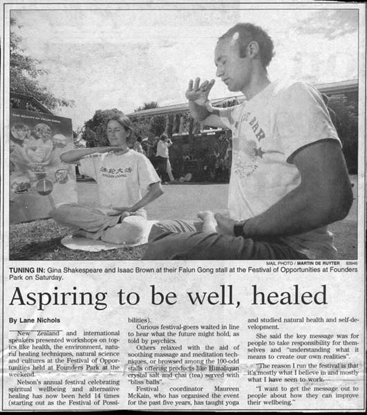 During the event, Gina Shakespeare, a reporter from the local newspaper The Nelson Mail interviewed practitioners and published a large photo showing practitioners' meditating. Practitioners displayed posters and distributed flyers during the two-day festival to clarify the truth to visitors. The effect was quite good.