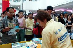 (Clearwisdom.net) From March 19 to 20, the "Uncompromising Courage" Art Exhibition was held in front of a supermarket in the Plaza Medan Fair, a shopping center in a Chinese community in Medan City, Sumatra Province. During the two-day exhibition, countless people came to see the paintings. There were so many visitors and such a huge demand for information that every practitioner at the site barely had a chance to catch their breath! Furthermore, there were so many Chinese faces and each practitioner treasured every moment to tell them the truth about Falun Gong. During the two days, more than 10,000 copies of Falun Gong materials were distributed.