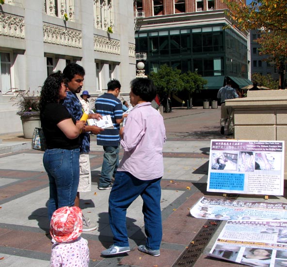 That same day, Falun Gong practitioners from Bay Area of San Francisco also held a series of activities, including an anti-torture exhibit, truth-clarifying photo exhibit and press conference in front of Oakland City Hall, calling for help in stopping the persecution of Falun Gong and bringing justice to all vicious people and police for persecuting Falun Gong.
