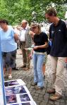 Lots of German people stopped to take in the essence of ancient Chinese culture. Some took photos or filmed the demonstration of Falun Gong exercises and some carefully examined the display boards about the cruel persecution against Falun Gong. Some of them were pretty shocked by such a peaceful practice being cruelly persecuted in China, and they did not understand why, so they exchanged opinions with fellow practitioners who distributed leaflets. They took fliers with them and signed their names to appeal for the release of Falun Gong practitioner Jiang Renzheng, who was sent to the forced labour camp after leaving Germany for China. They also gave their good wishes to Falun Dafa and Falun Gong practitioners. Some stood in lines in front of the stand to read Falun Gong information and to wait for cards inscribed with the words Truthfulness, Compassion, and Forbearance.
