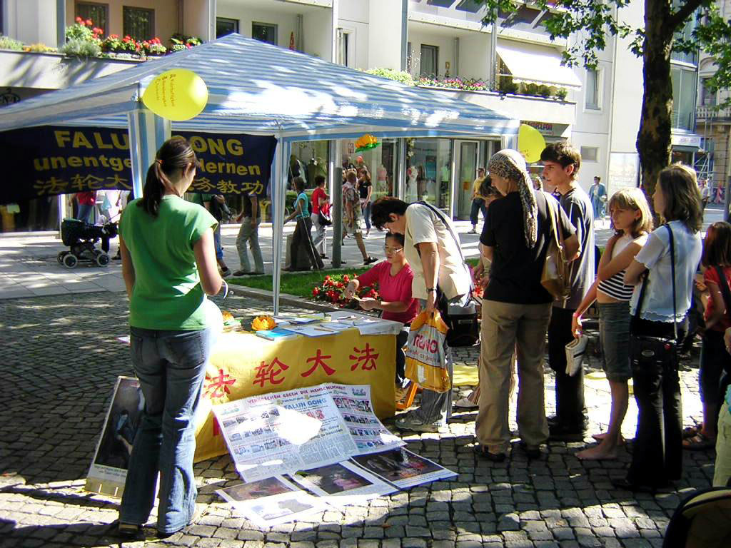 At the same time, a great number of kind German citizens learned the facts about Falun Gong being cruelly persecuted in China during these two days. Some said that they would like to learn the exercises, and we were very happy to invite them to join our weekly group exercise of Falun Gong.