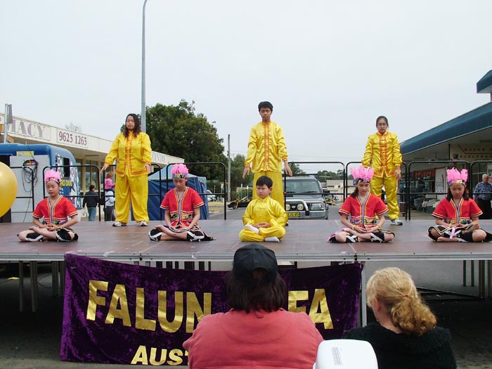 (Clearwisdom.net) On September 3, 2005, St. Mary's Town celebrated its annual spring festival. Tens of thousands of people watched the grand parade that opened the festival. Falun Gong practitioners' procession attracted much attention and became a focal point in the parade. Constant applauses and cheers were heard along the route when the practitioners passed by. An endless flow of people came to visit Falun Gong information booth and requested to learn the exercises.