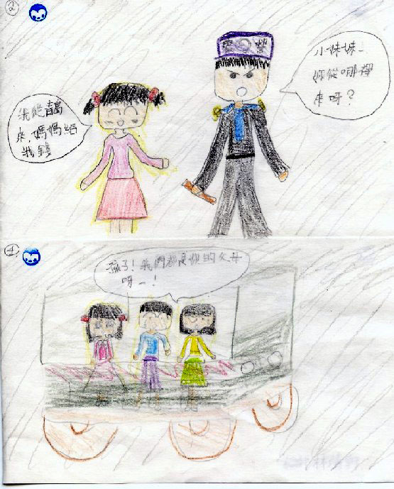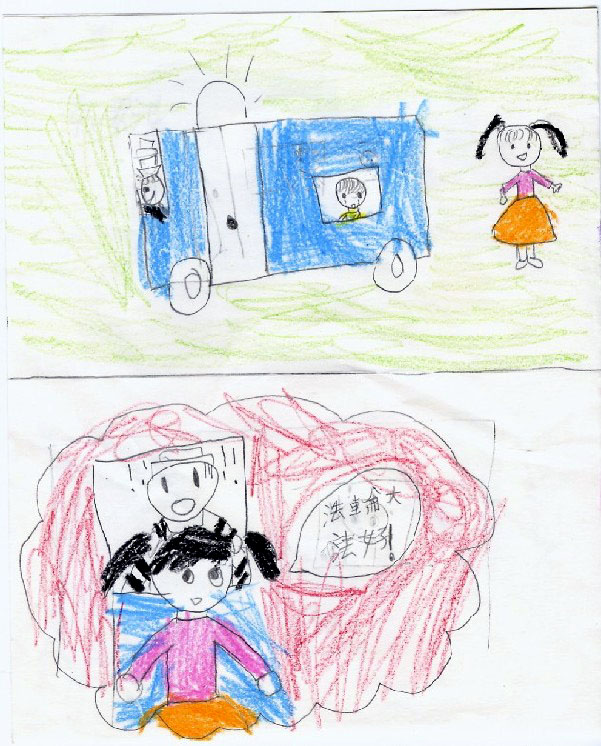 (Clearwisdom.net) Recently, Mingui School in Taipei took the Minghui article "A Little Girl in Front of a Police Car" (http://www.clearwisdom.net/emh/articles/2004/1/3/43757.html) as the topic of the month for their drawing classes. The schoolteachers hope that this assignment can provide an opportunity for young practitioners outside of China to protest the brutal persecution which has torn numerous families apart and orphaned many innocent children.