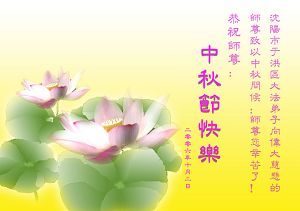 Falun Dafa Disciples in Shenyang Wish Our Great and Compassionate Master Happy Mid-Autumn Festival!