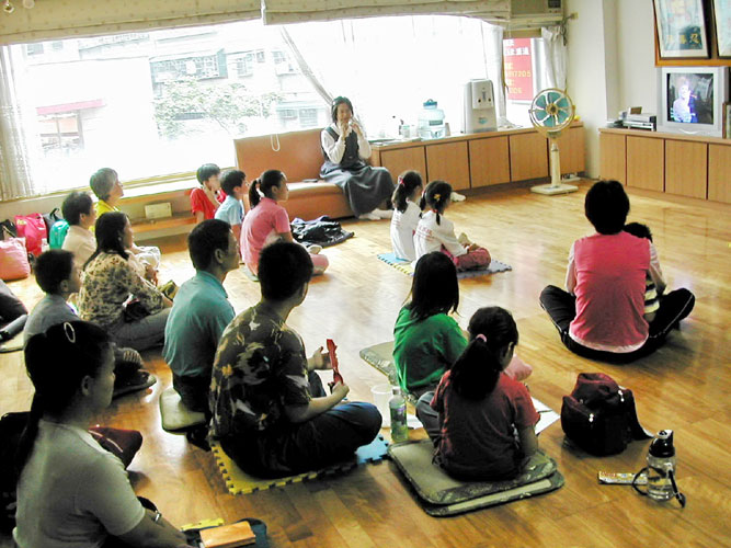 (Clearwisdom.net) Shulin Minghui School has a traditional Parent-Children Camp on the last Sunday of each month. It is free of charge, and participants can practice the Falun Gong exercises together and attend a traditional Chinese culture class. Moreover, children can watch their favorite video programs, sing along, and learn to bake their favorite desserts from the "Do It Yourself" class. It helps participants to make new friends who are also interested in cultivating themselves and provides a platform for parents and children to spent time together doing something they all enjoy. A Minghui reporter recently joined them to experience the Camp.