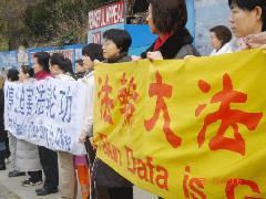 (Clearwisdom.net) At noon on February 12, 2006, Falun Gong practitioners in Vancouver gathered in front of the Chinese Consulate to protest the Chinese Communist Party (CCP) agents' assault of an Atlanta Falun Gong practitioner, Dr. Peter Yuan Li.