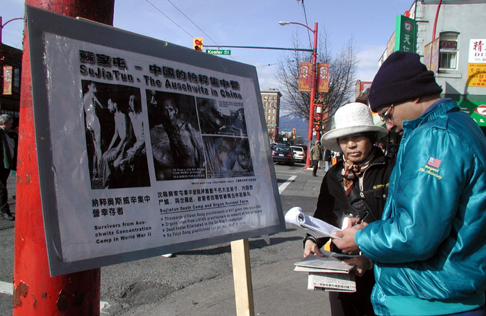 (Clearwisdom.net) From March 15 to 19, Vancouver practitioners held photo exhibits and a signature drive outside the Vancouver Art Museum, in Chinatown and at the Metrotown mall in Burnaby to call upon the public to pay close attention to the atrocities happening inside the Sujiatun Concentration Camp. They collected signatures for an appeal letter which calls on the Canadian government to condemn the abhorrent crimes of the Chinese Communist Party (CCP) and form a delegation to investigate the concentration camp. The letter will be delivered to Parliament.