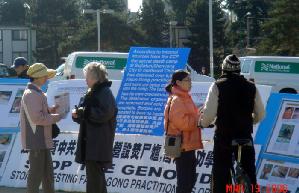 ![]() Many passerby stopped to watch practitioners' posters first and then signed their petition |