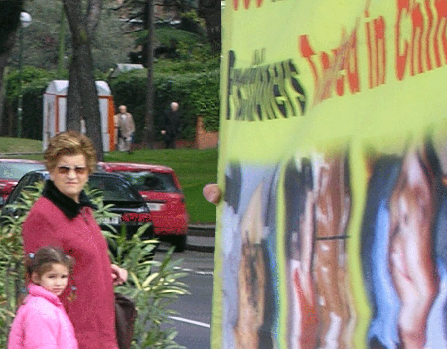 (Clearwisdom.net) On March 25, 2006, Falun Gong practitioners in Madrid, Spain gathered in front of Chinese Embassy and condemned the CCP's brutal crimes in setting up Sujiatun Concentration Camp to murder Falun Gong practitioners, harvest body organs from living practitioners and cremate their remains to destroy evidence.