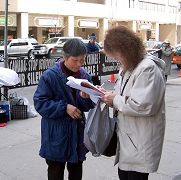 A western woman said, "I very much believe that the persecution pictures you have provided are true." She saw the photos of practitioners who have been miserably tortured to death and said, "It is indeed true." She then signed the petition.